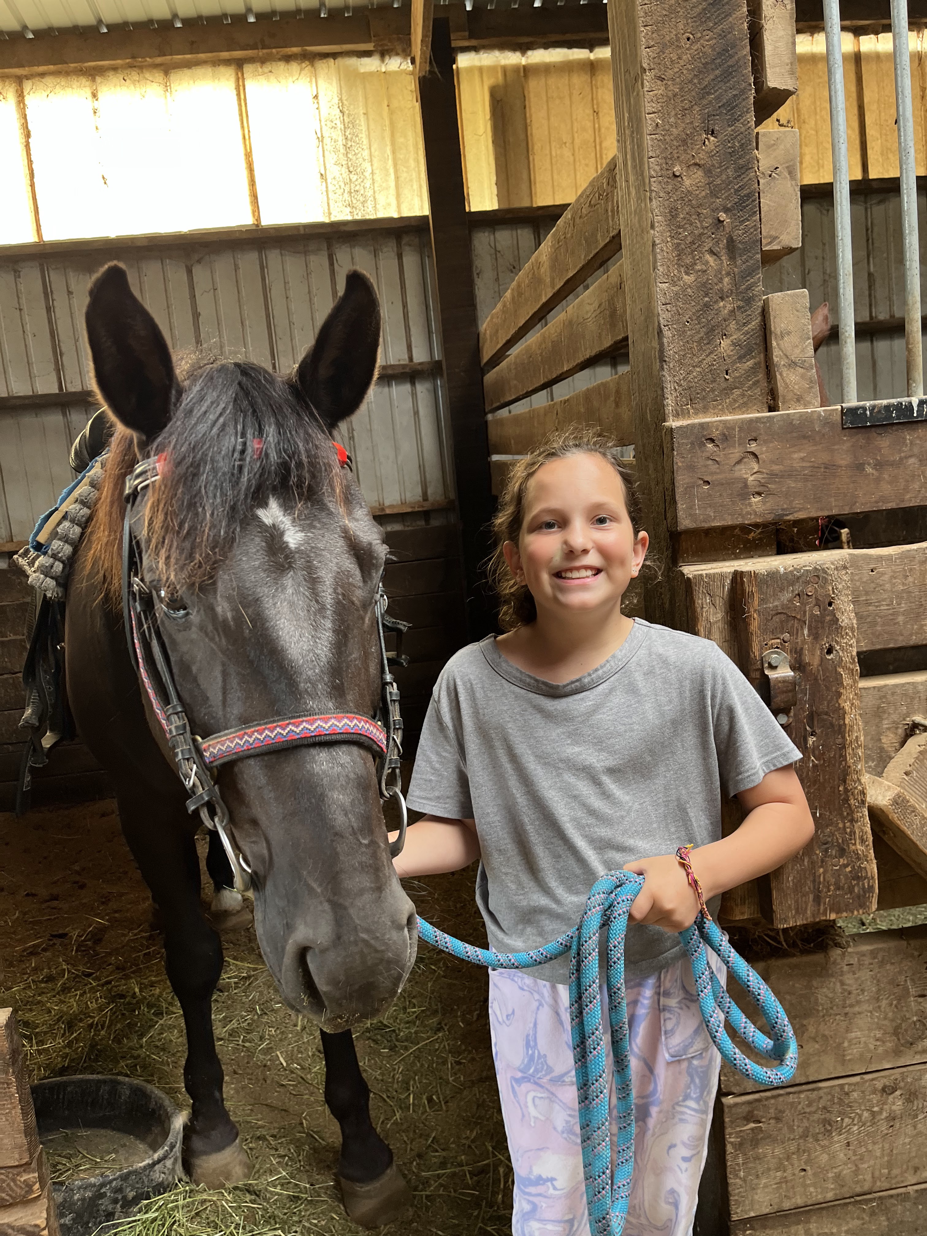 Hello from Hoofbeat! We have had an excellent three days here at camp! Unfortunately, due to poor air quality conditions, we had to cancel our afternoon riding rotations today. However, the three afternoon groups were able to participate in a special "Hoofbeat Horse Show" instead! In the horse show, campers got to groom their pony, braid their mane and tail, pick out their halter and lead rope, and "show" them to the judges! We had so much fun, and we hope to pick back up with our riding classes tomorrow. For now, please enjoy some photo updates of our time at camp!