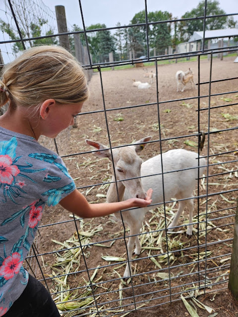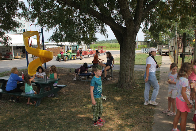 We have been having a fabulous week here at Hoofbeat Ridge! Today, we took a special field trip to Peck's Farm Market. There, we got a chance to take a train ride around the property, shop in the market, and feed the various animals. We saw cows, goats, potbelly pigs, bunnies, llamas, peacocks, and even buffalo! Back at camp, we had our usual rotations of horseback riding, horse science, and horse fun. We can't wait to see what the next two days of camp bring!